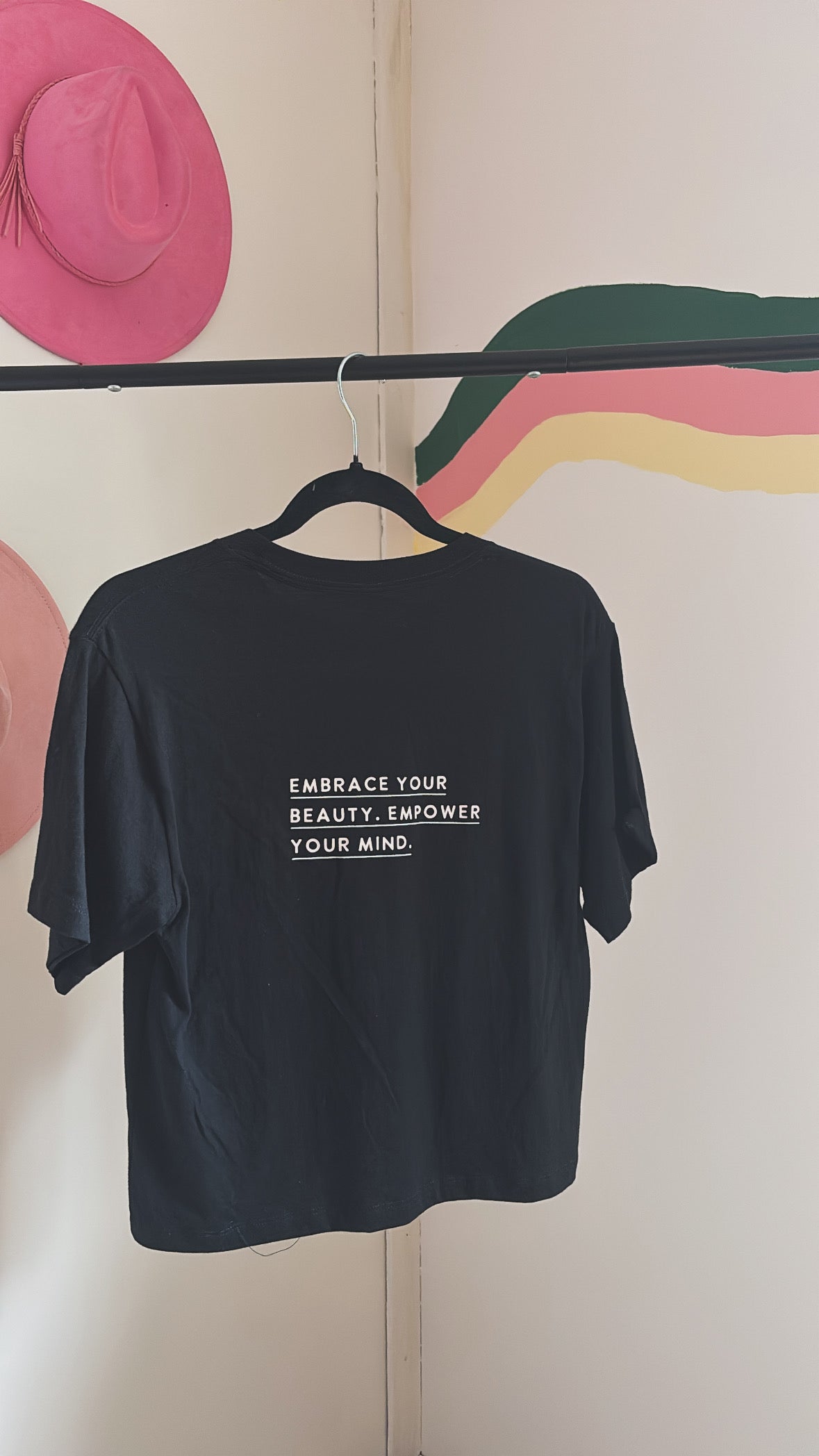 - Printed quote on back: Embrace your beauty. Empower your mind.